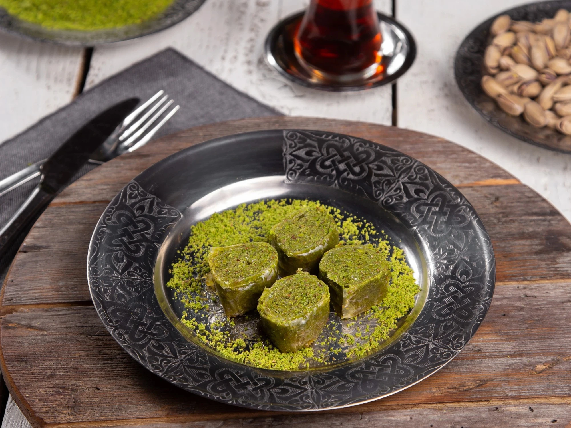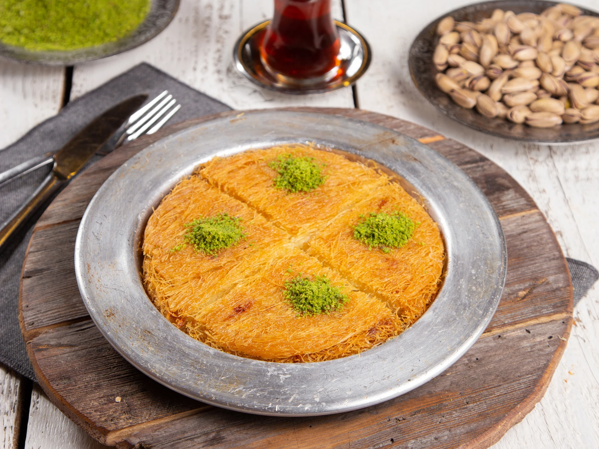 Yufka katlarının arasında taze kaymak ve fıstığın buluştuğu şöbiyet, tatlı severler