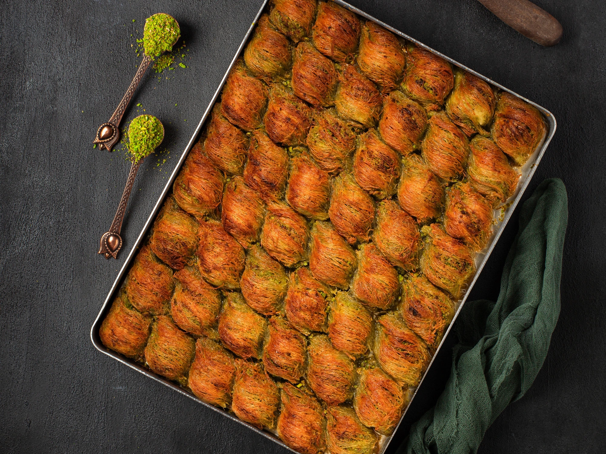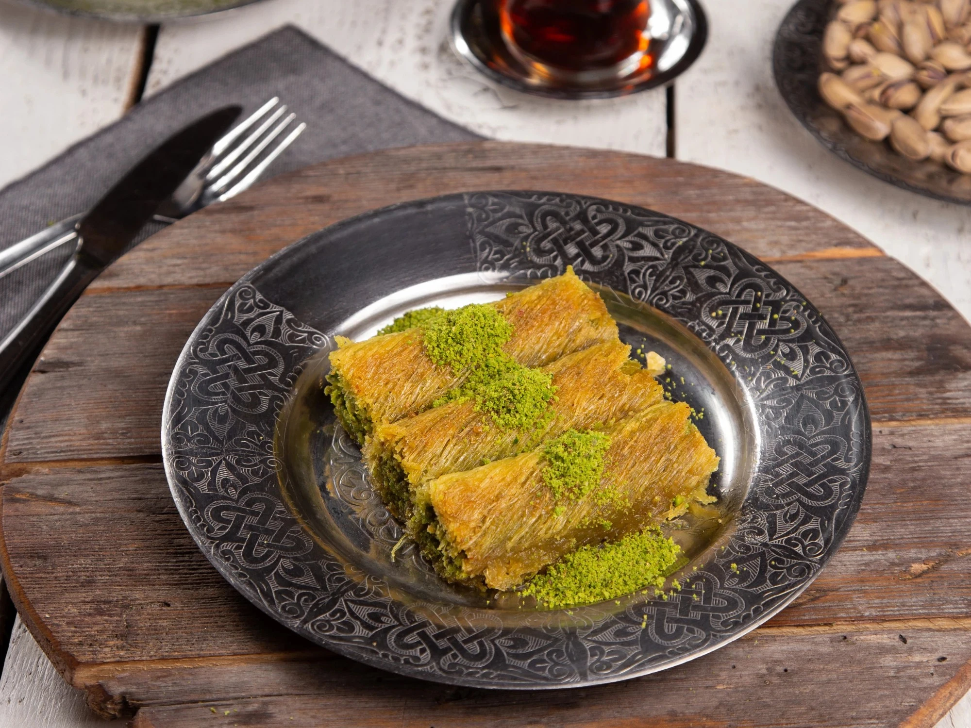 Özel kat kat hamurun arasına gizlenmiş fıstık ve şerbetin buluşmasıyla ortaya çıkan